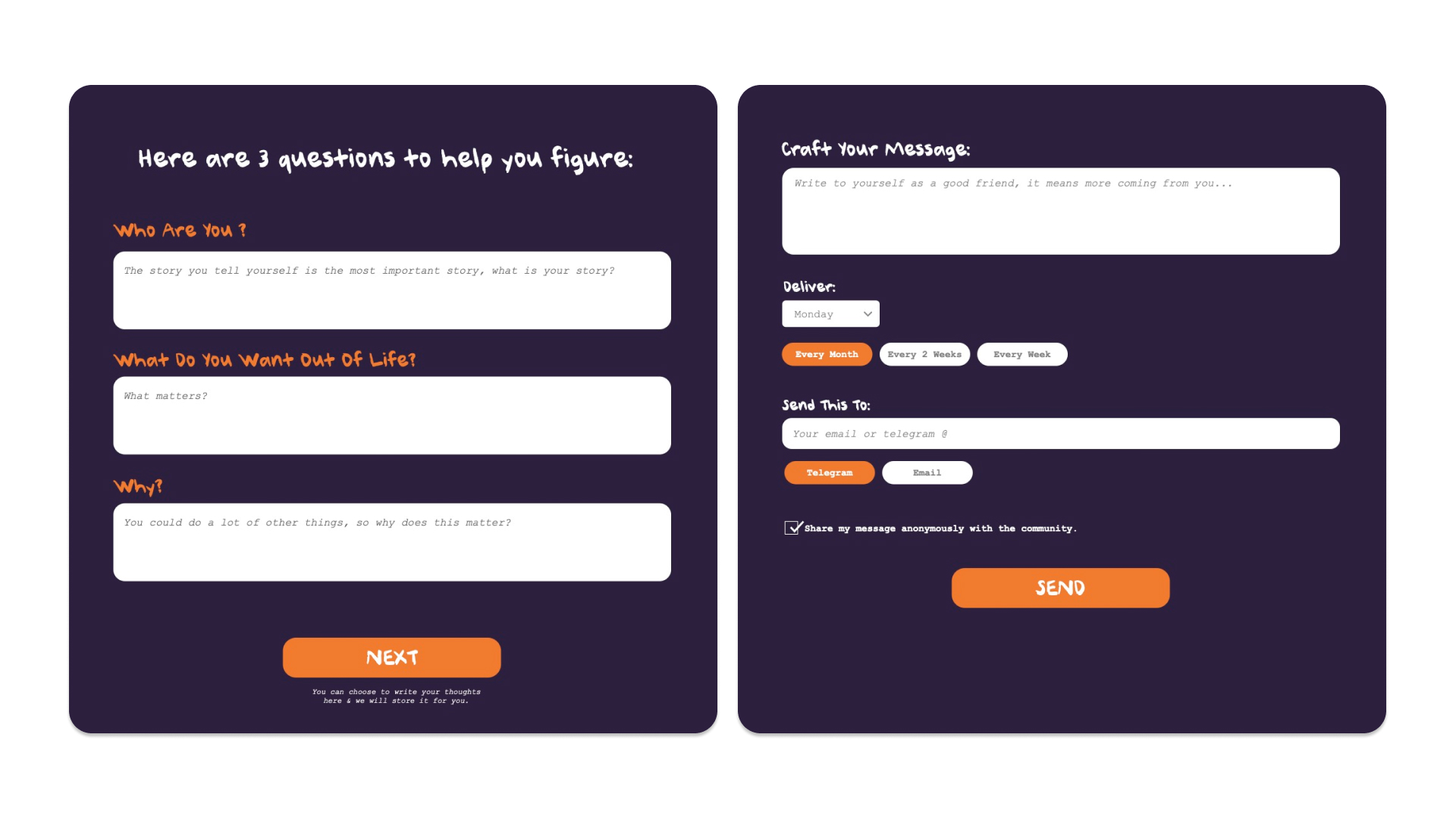 Message From Me is a hackahton project that was inspired by the idea of 'being there for yourself’ & the idea of a time capsule.